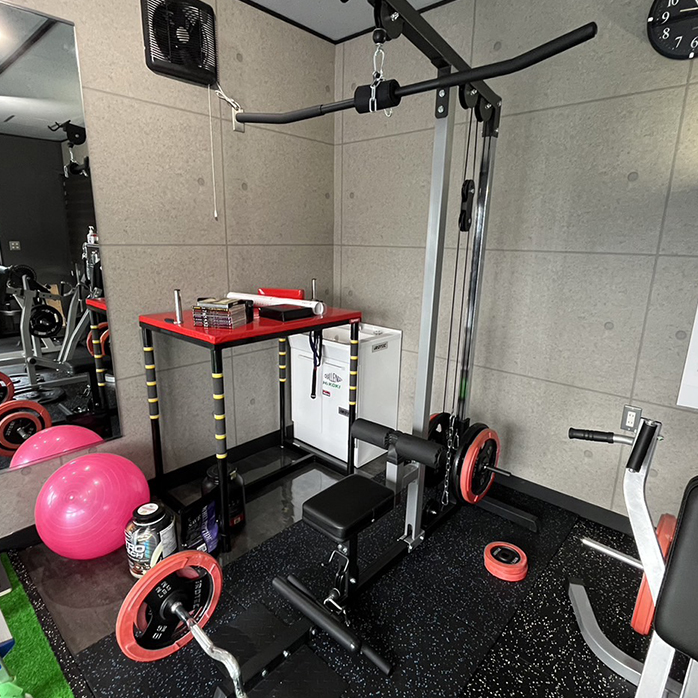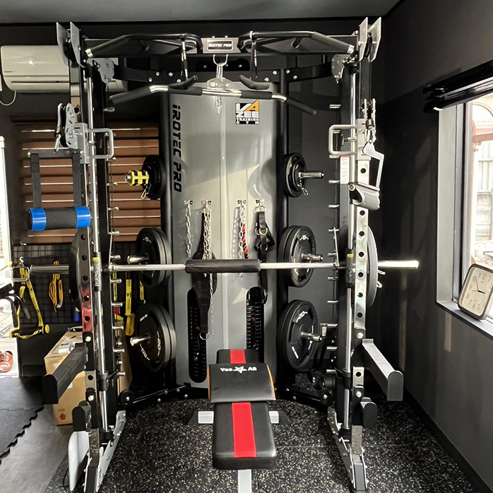 スミスマシン筋トレ好きの方からすると定番のマシンですが、スミスマシンとは バーベルがレールに固定されていて、レールに沿ってバーを上下に動かすことができるので、安全性・機能性に優れたウェイトトレーニングが可能になります。「マルチファンクション」 の名の通り、トレーニング方法は数え切れないほどあります。全身のボディメイク、くびれ作りやヒップアップなど部位を狙ったトレーニングも出来ますので、使い方はぜひお声かけ下さい。