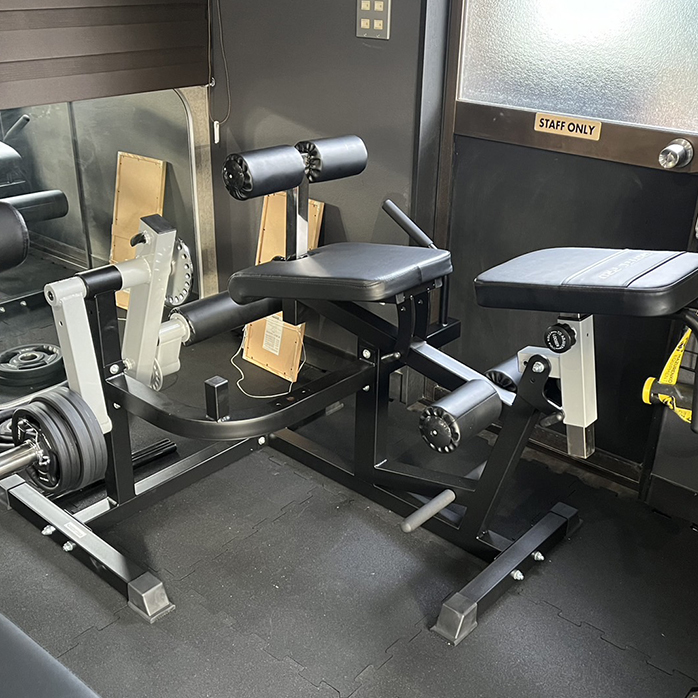&アブバックベンチ太ももの前後を効果的に鍛えたいトレーニーに是非お勧めしたいマシンです。大腿四頭筋・ハムストリングを効果的に鍛え上げます。スクワットだけでは物足りない方にオススメです。さらにシートの角度を変え、アブトレーニング・バックエクステンションも可能に!